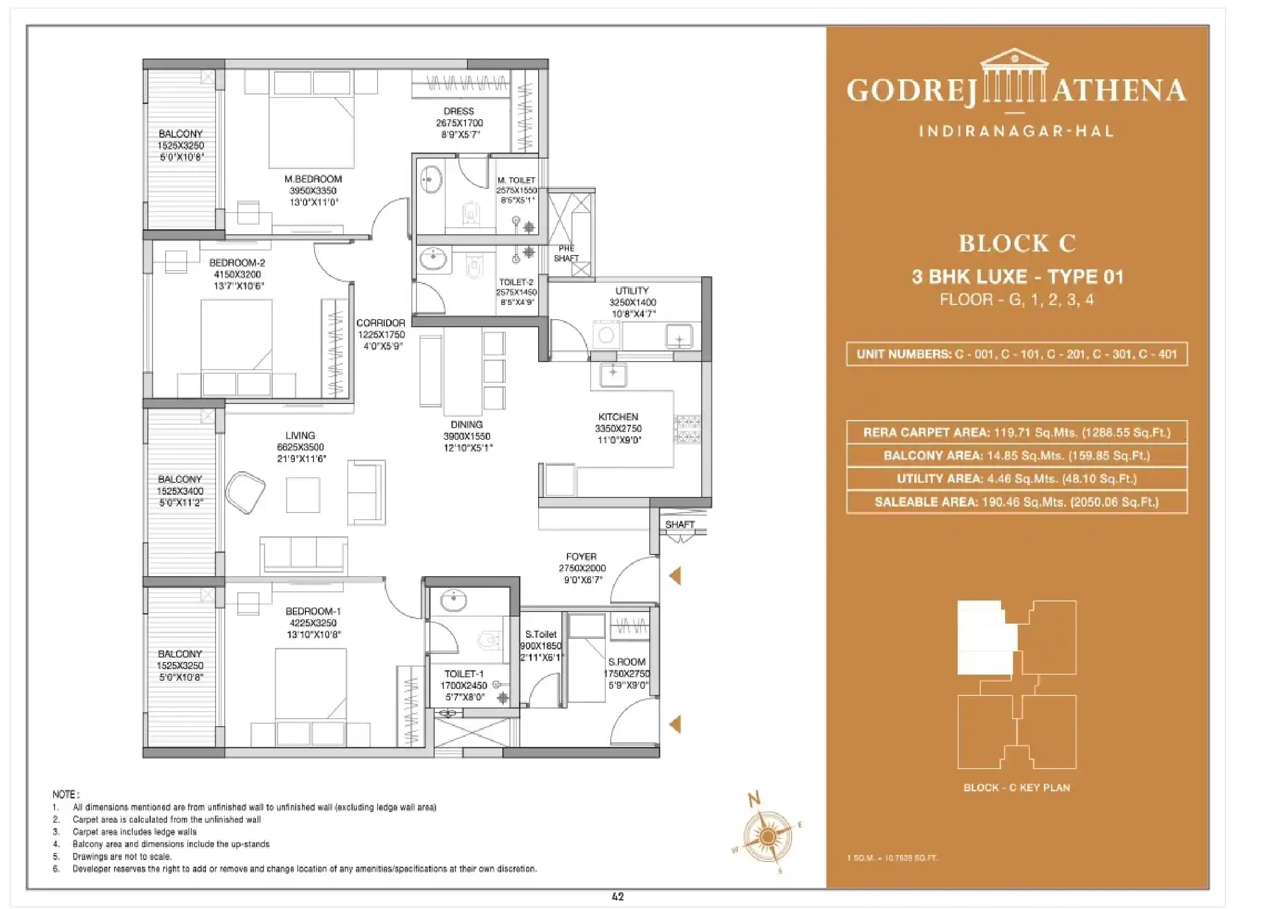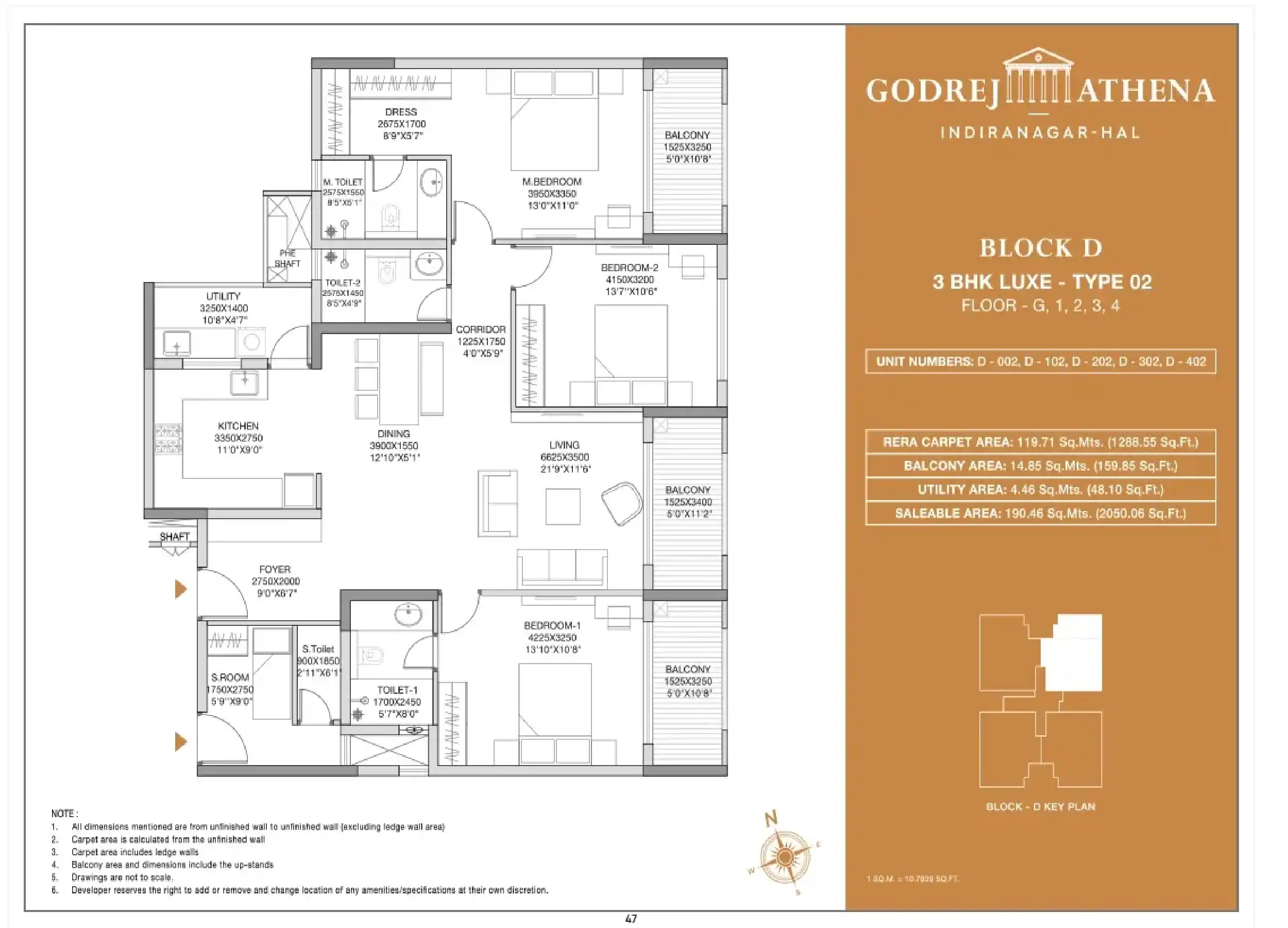 | Type | Built Up Area (Sqft) | Price |