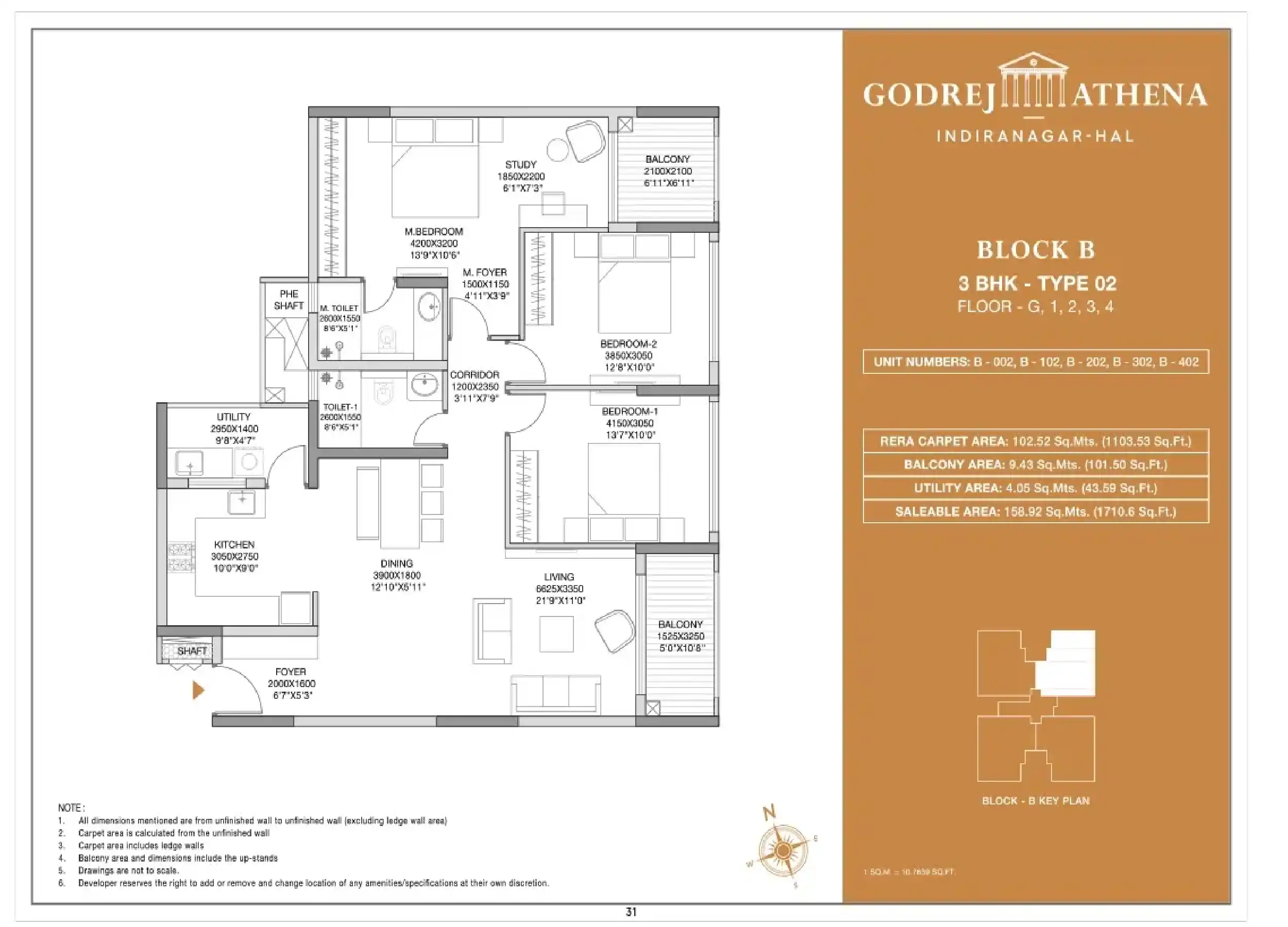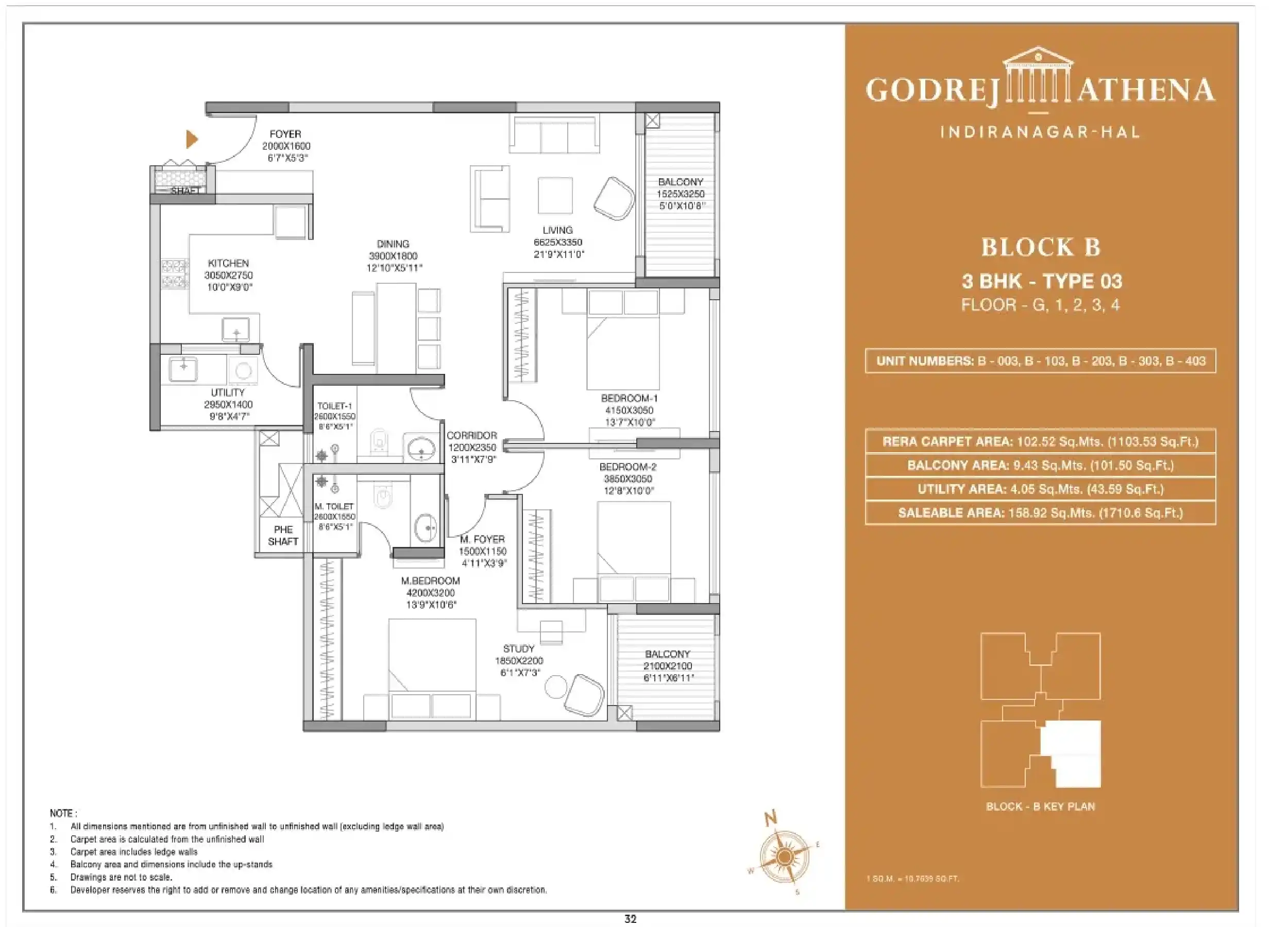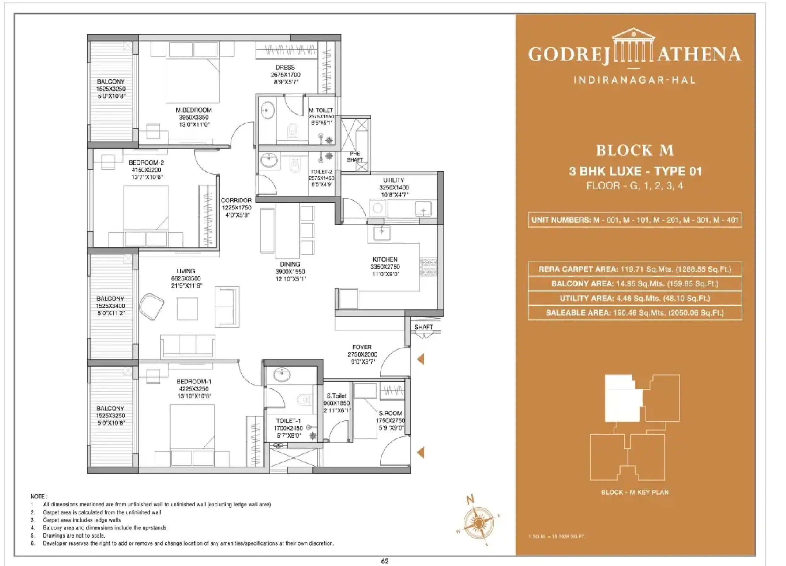 | 3 Bed Room | 1710 |