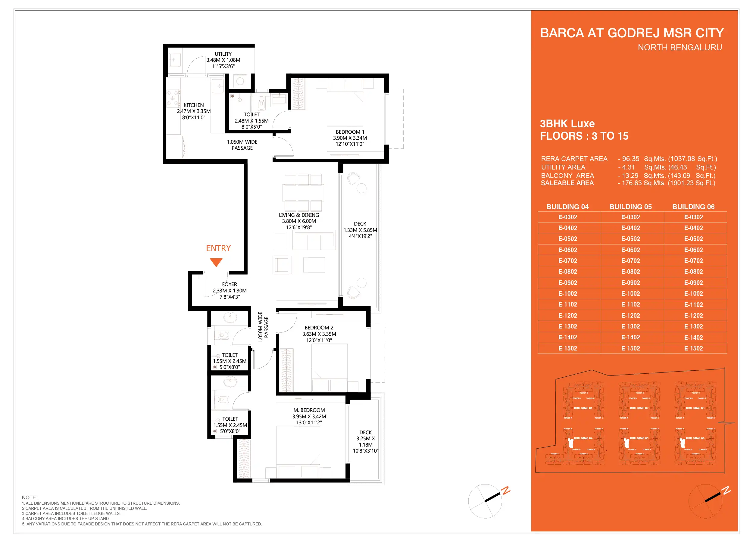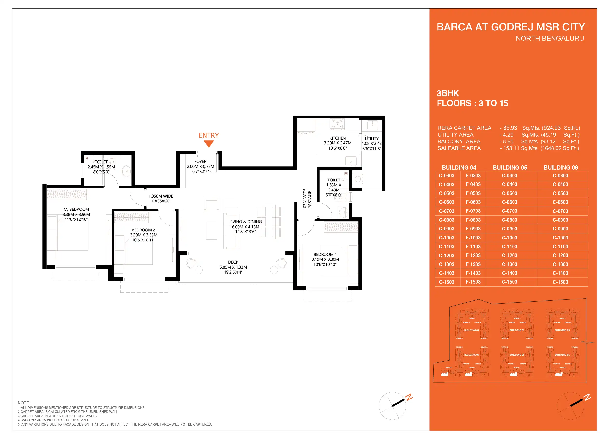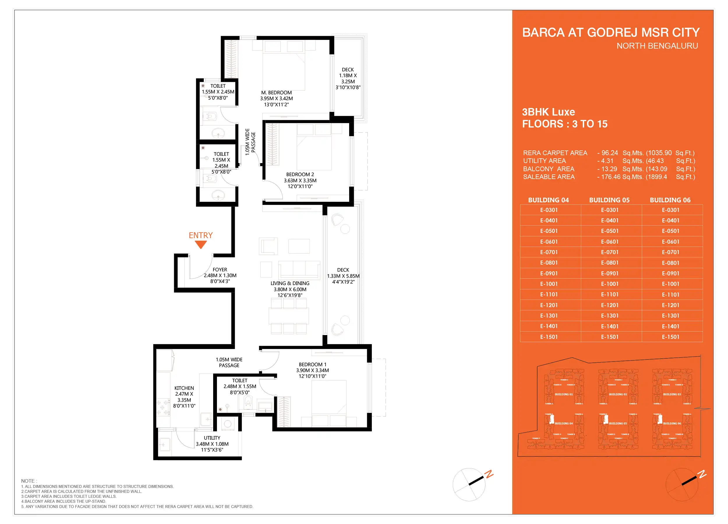 | 3 Bed Room + 3T | 1800 - 1900 |