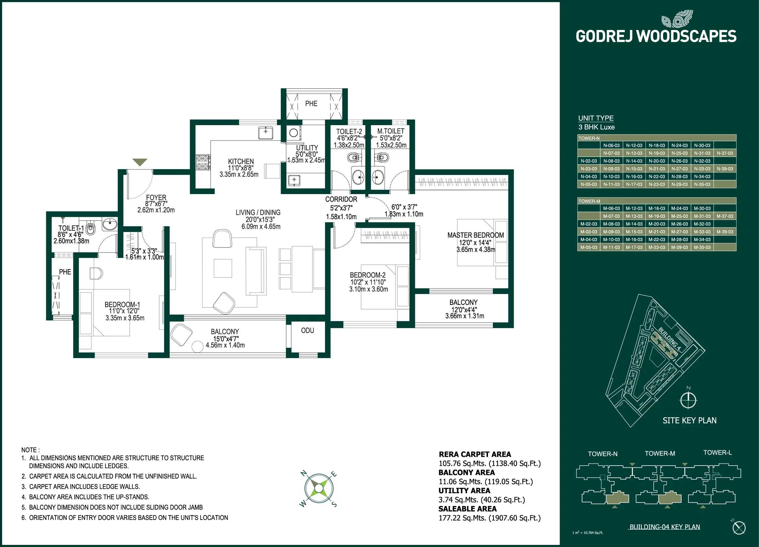 | 3 Bed Room | 1907 - 2027 |